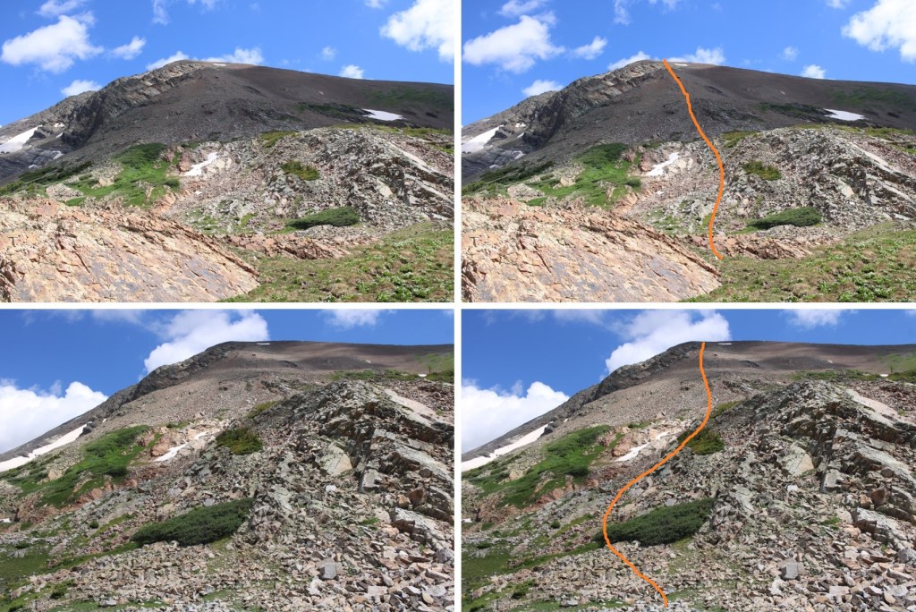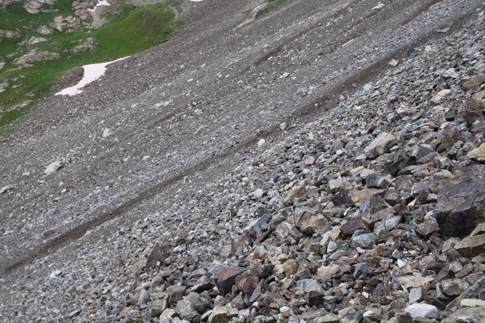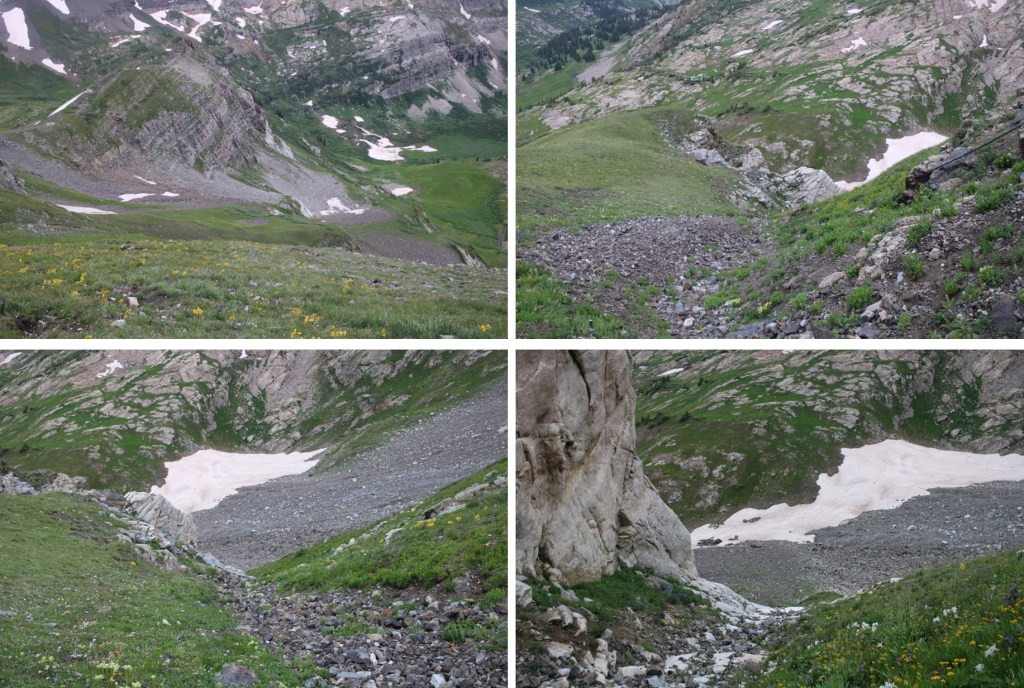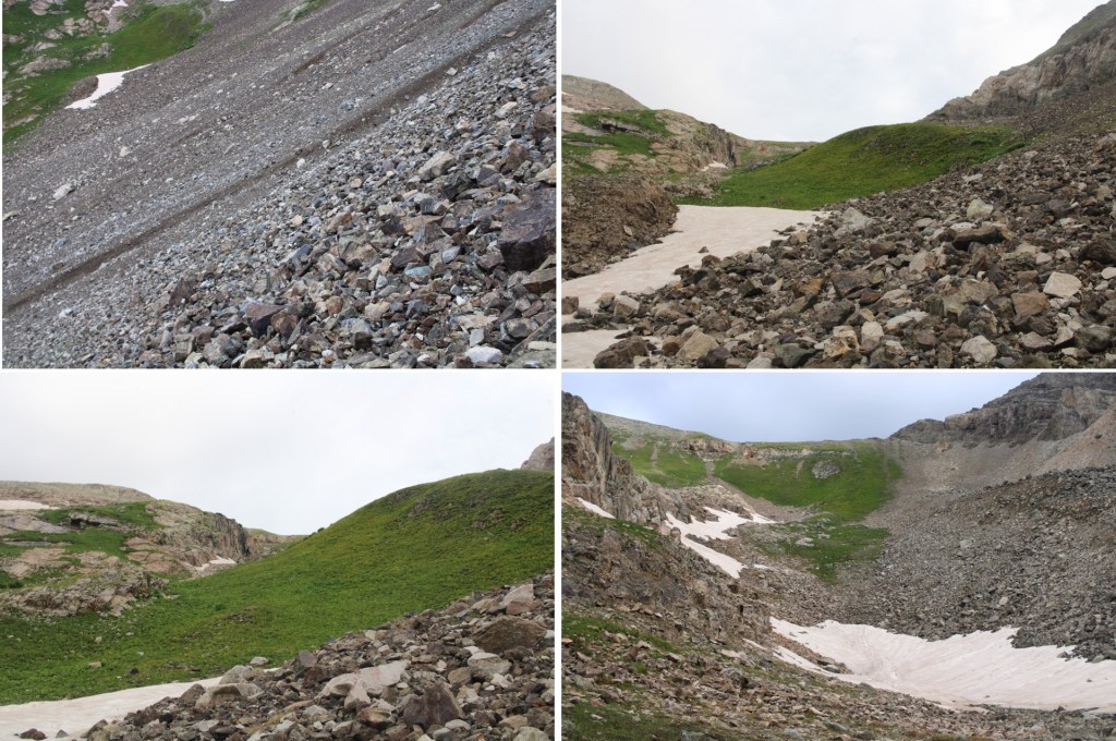 Once there, I should have been able to take the road back to my truck, but there was snow still covering it, even in mid-July, so I retraced my steps and took the first gully of the day again, but you should be able to take the road back all the way. If not, it’s an easy and obvious workaround.