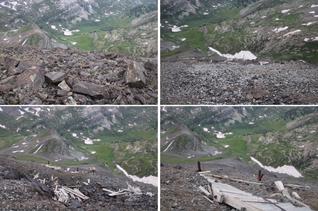 I put on my microspikes and descended on scree past an old mine (not much is left)