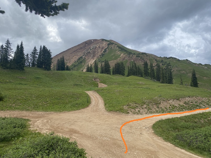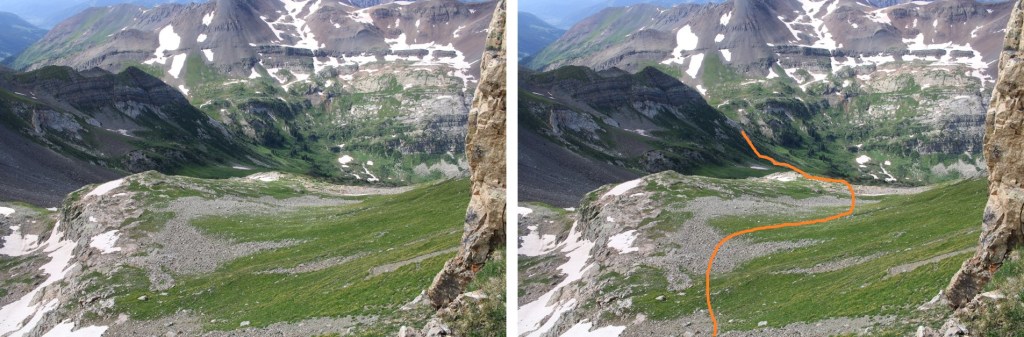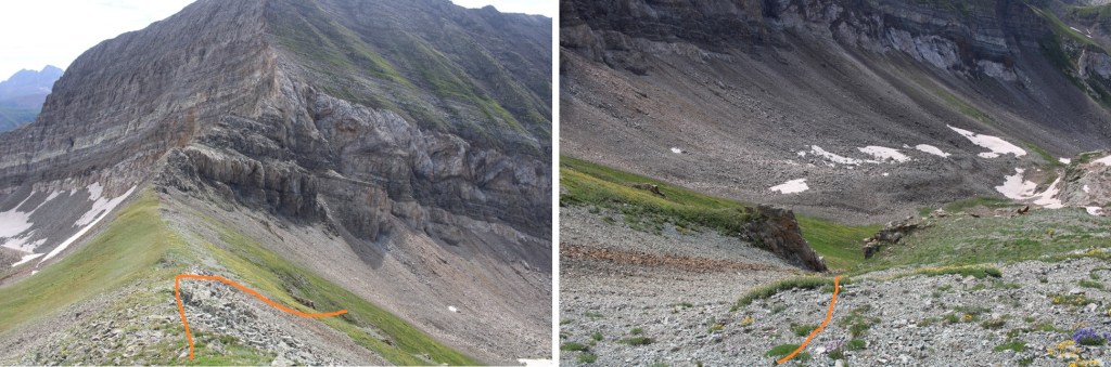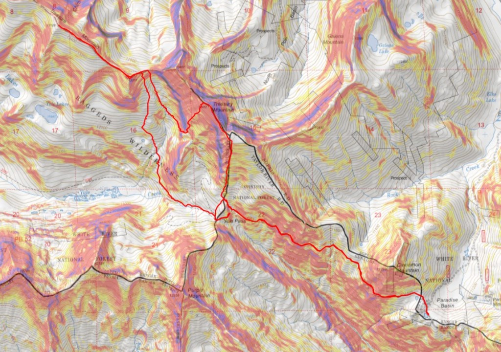 I know those pictures weren’t helpful, so, from later in the day, here’s a visual of how I ascended the ridge to Treasury Mountain