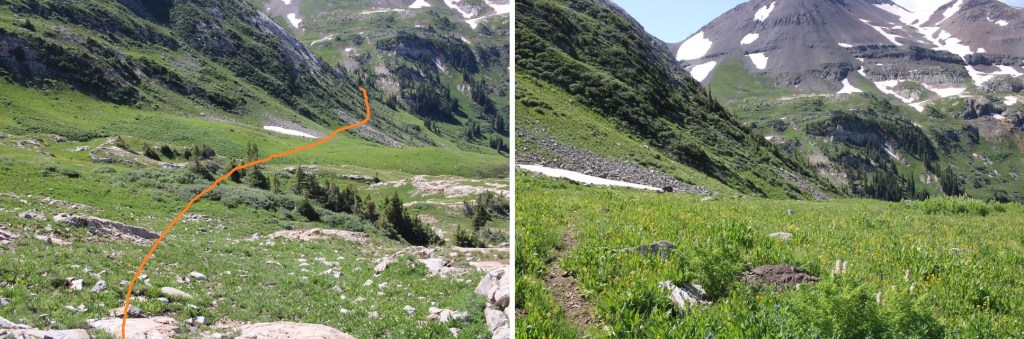 From there, I followed Yule Pass Trail to northwest.  This trail used to be a mining road, but the mountain has re-claimed it and is healing its scars.  In a lot of areas it’s impossible to tell there was ever a road around this mountain.  Some areas were steep, but the runnels were all crossable.