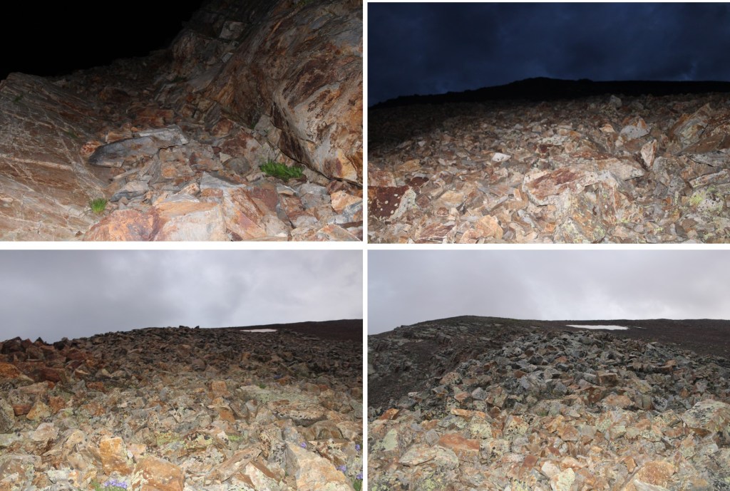 I’d made great time, and it was still dark. I couldn’t see much, so I waited for 20 minutes for the sun to rise. There were a lot of clouds in the sky, and the sun refused to make a timely arrival, so I continued on. Here’s what my ascent looked like