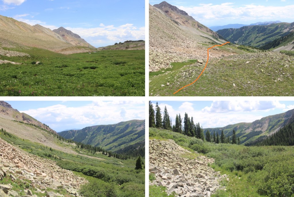 From the summit I once again got a good look at my decent route down the basin. I took a mental picture of it for later