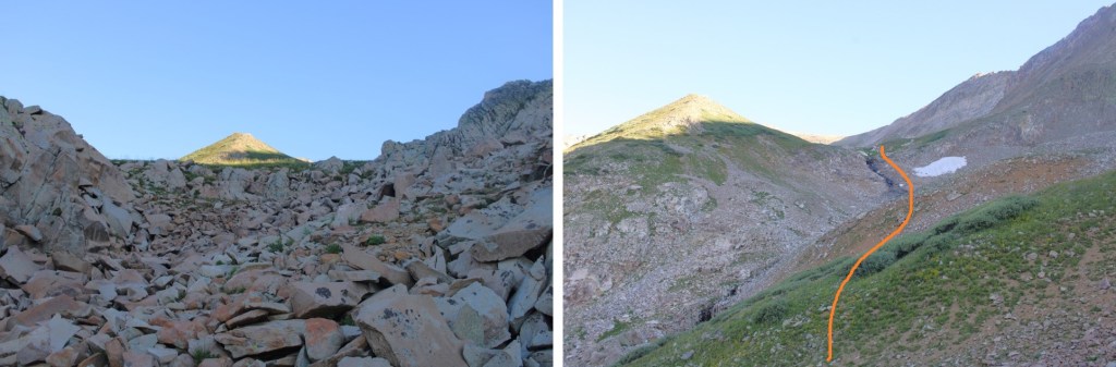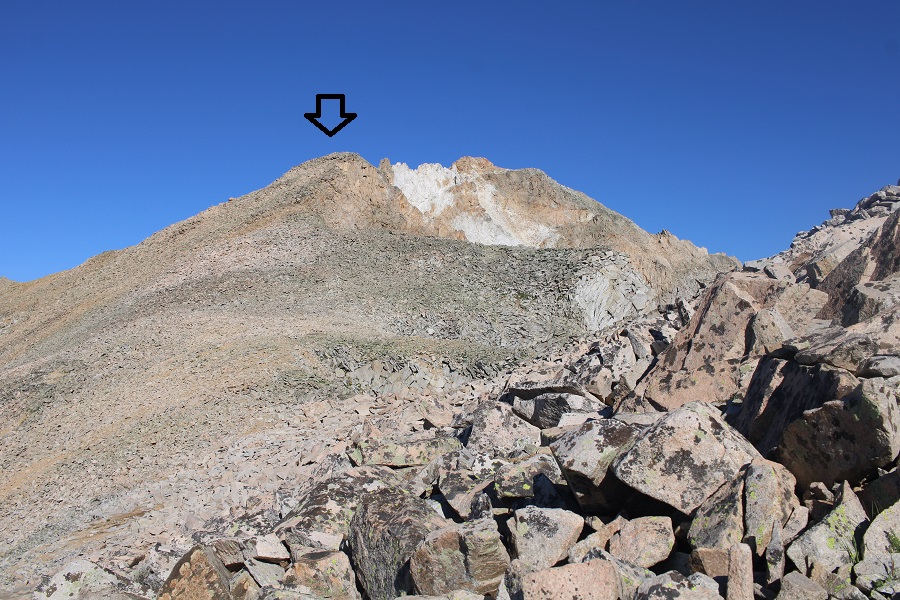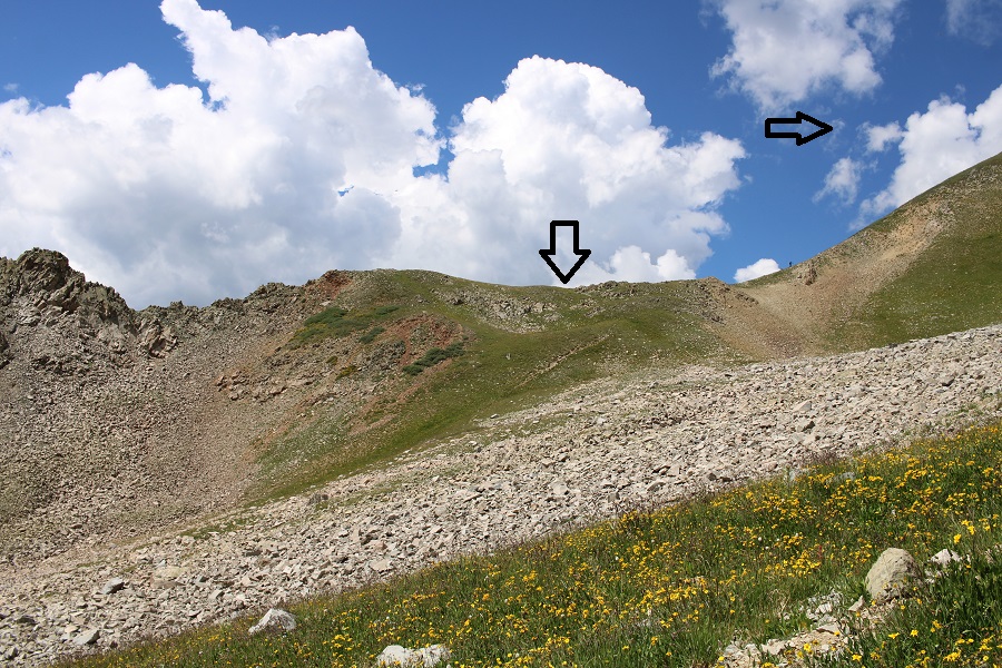 Once at 11570’, I rounded the side of this hill, and headed up