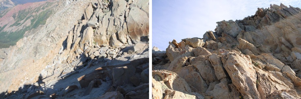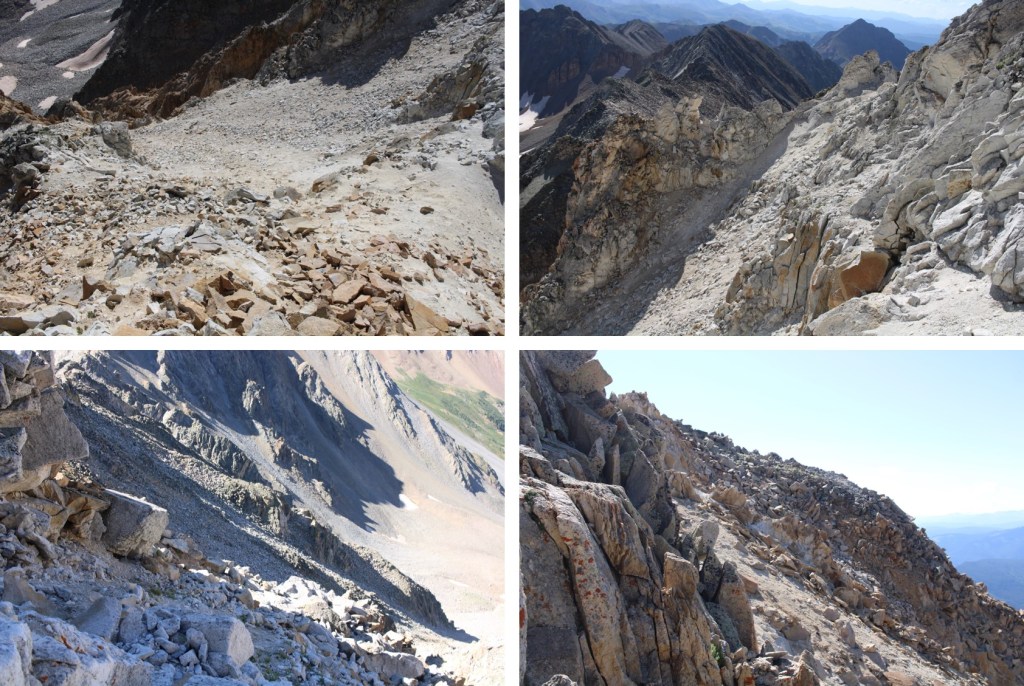 But eventually switched to rock. I still had on my helmet. The route is fairly obvious. You can stick to the ridge the entire time, keeping it at class 3. If you opt to dip down to the left or right you might be able to keep it difficult class 2/easy class 3.