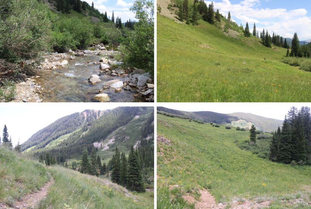 I followed a slight trail until I crossed the creek (creek crossing shoes needed) and then there was no more established trail (but a lot of game trails) I followed the drainage northwest to treeline. Also, here I saw fresh bear scat (still wet) so be aware there may be a bear in the area.