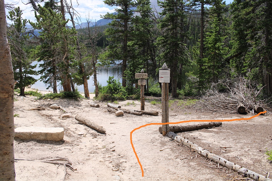 It was 5 miles to Sandbeach Lake. Once at the lake, the fastest way to skirt the lake and find a trail is to go right here