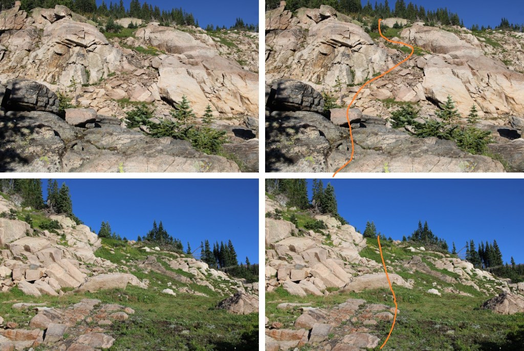 The Sandbeach Lake Trail was a class 1 trail I took all the way to Sandbeach Lake. There were 2 creek crossings, but they had footbridges across.