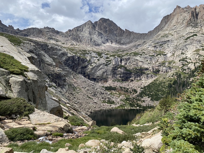 I started from the Glacier Gorge trailhead in Rocky Mountain National Park at 3:30am. There were already several parties in the parking lot (probably 10 vehicles), but didn’t see another person on my route all day. This is also a bus stop for access to Glacier Gorge (and lots of other hikes). All this means is that it was overly crowded the last 2 miles of the hike on my way down. Passing people became impossible, and more of a stroll as I hiked out with hundreds of other hikers.