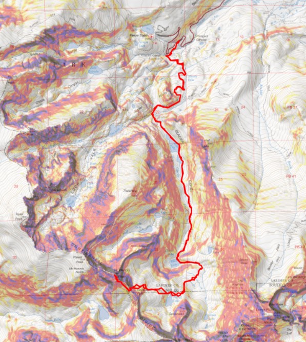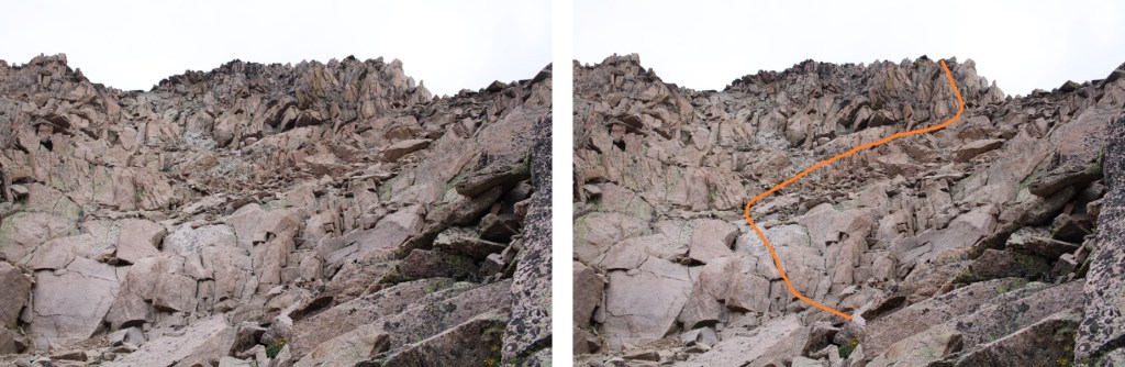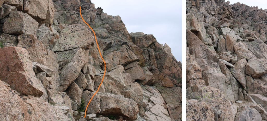 Here’s the overall route of the rest of the climb. I felt this was difficult class 3, with some exposure.