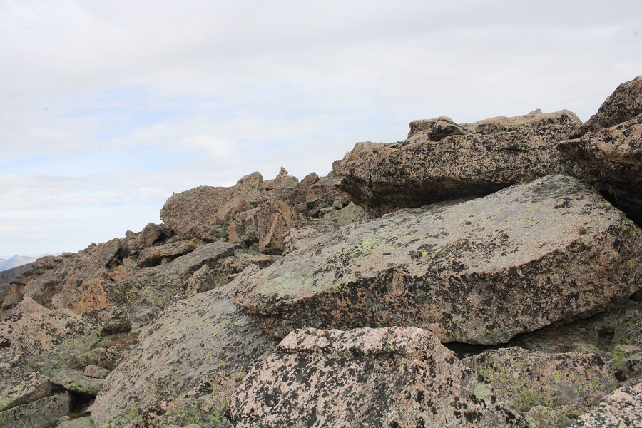 I rounded the mountain, and was now on the west side of the peak. Here is got a bit trickier. There were still cairns to follow. I headed up a rock slab, and rock filled gully. This was easy class 3