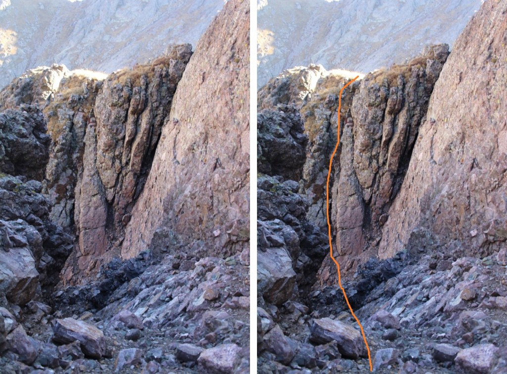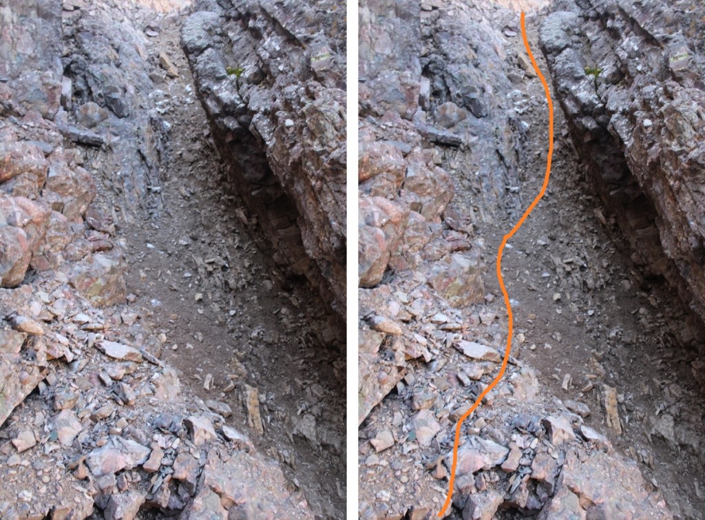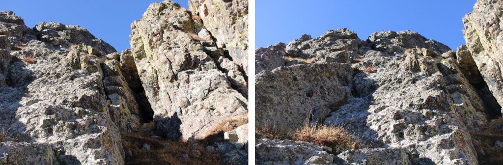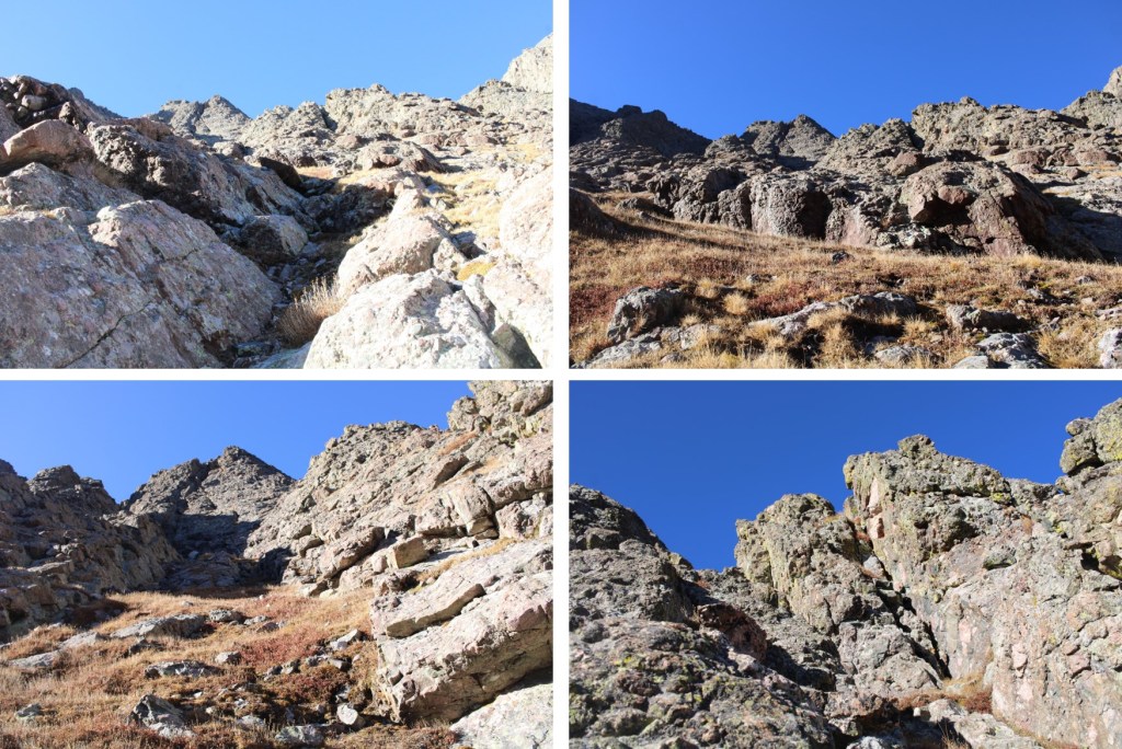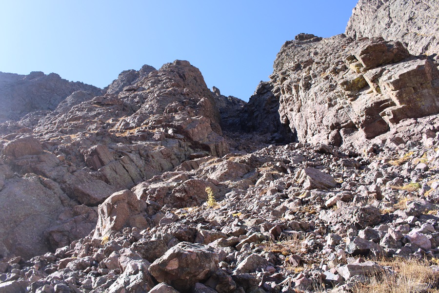 My advice to you is to go straight up the gully, as it stays at class 2+. I however, did not do this. I went up the right side. This goes at class 4, and was unnecessary. In addition, it included a drop of about 40 feet on class 4 terrain. I’ll show pictures of the route I took, but I really recommend taking the easier gully.