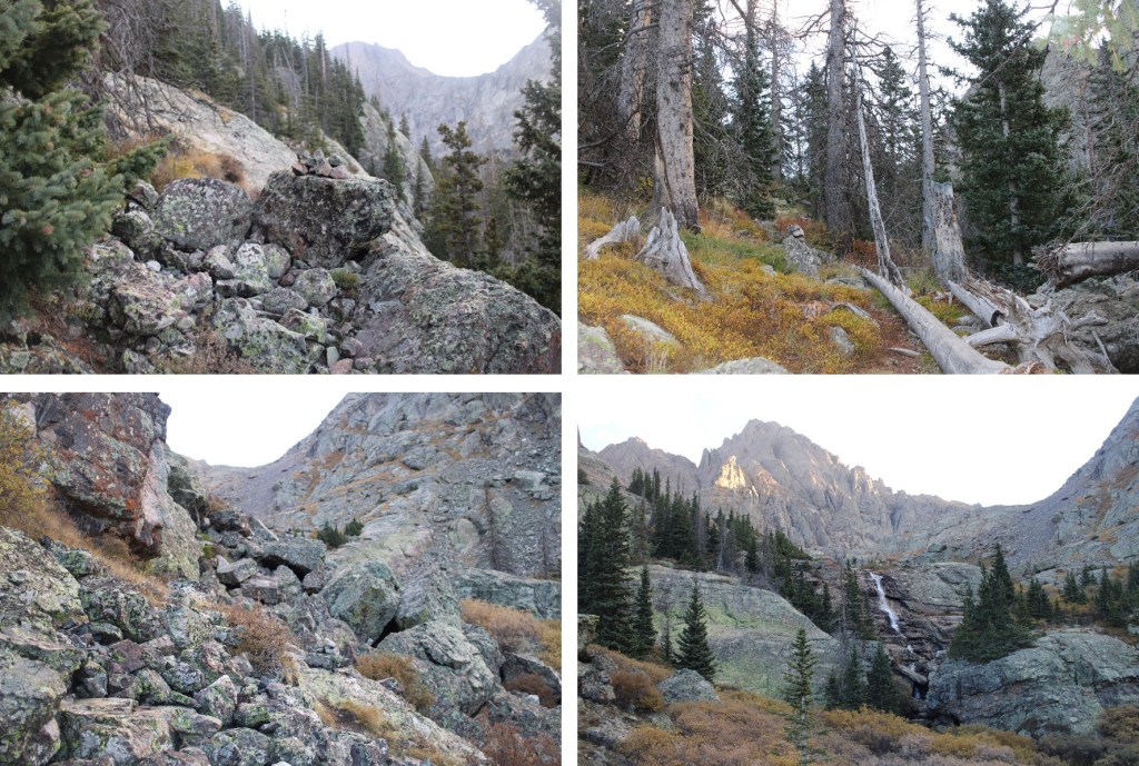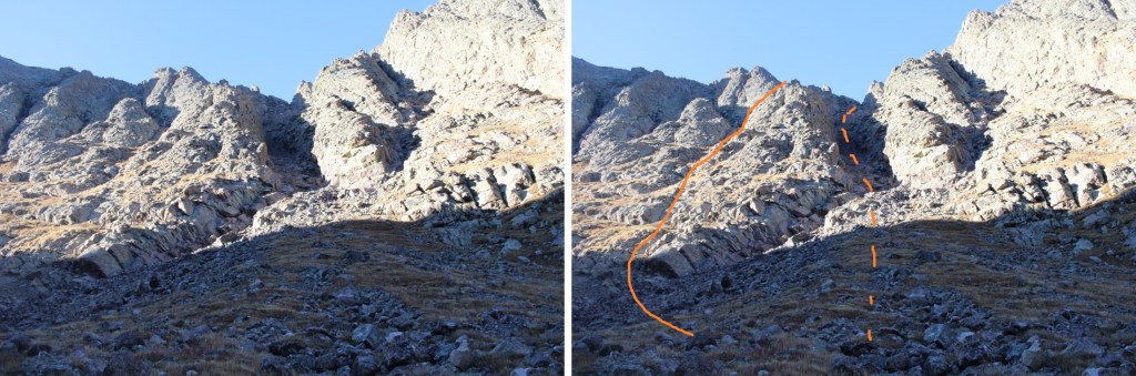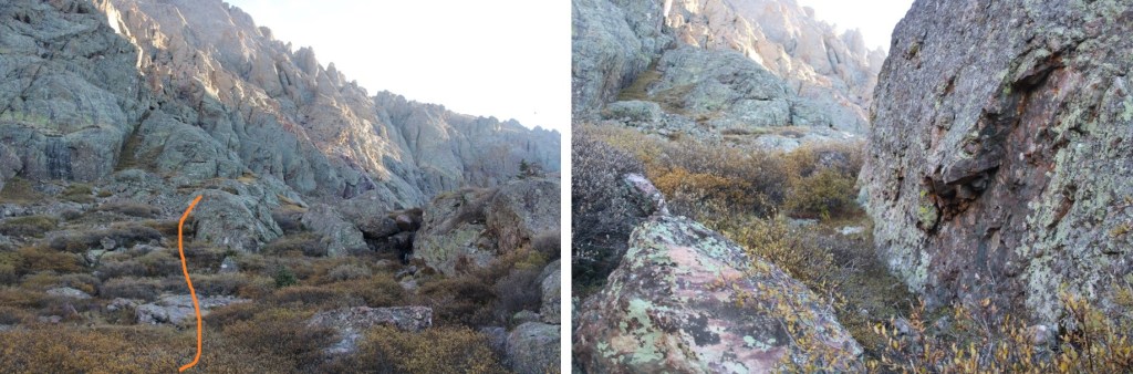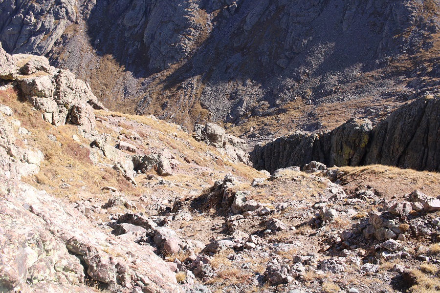 I took the gully down. There were several options to make this happen. When I had options, I went right, and wasn’t disappointed. Here are some pictures of the way I took down.