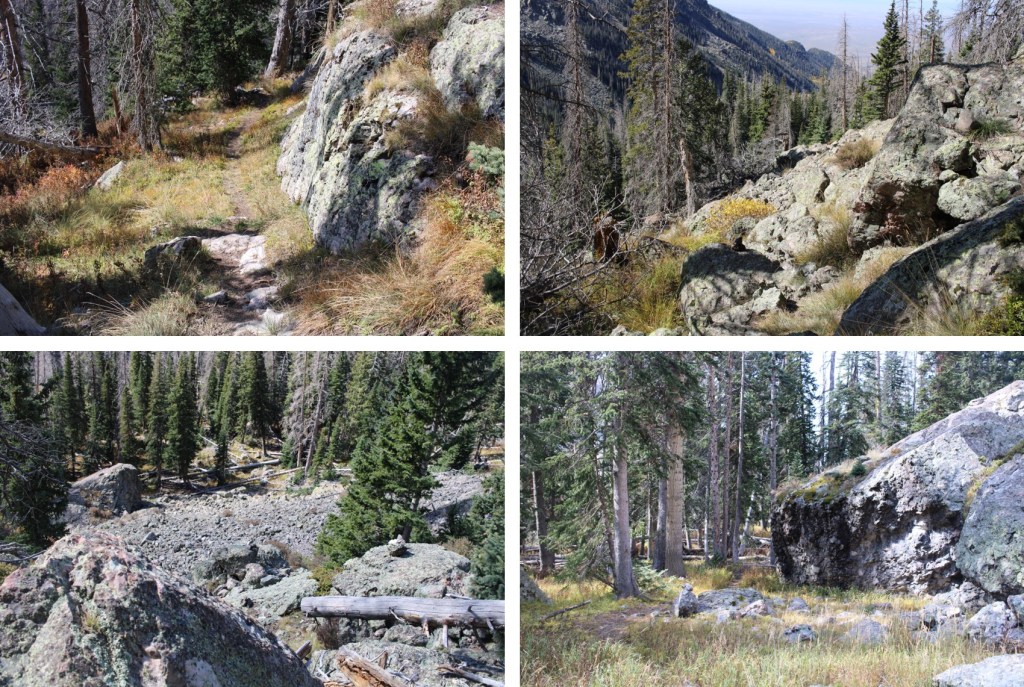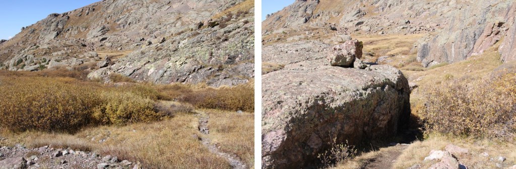 I went behind this rock, and caught up with the trail to Cottonwood Lake, now heading east.