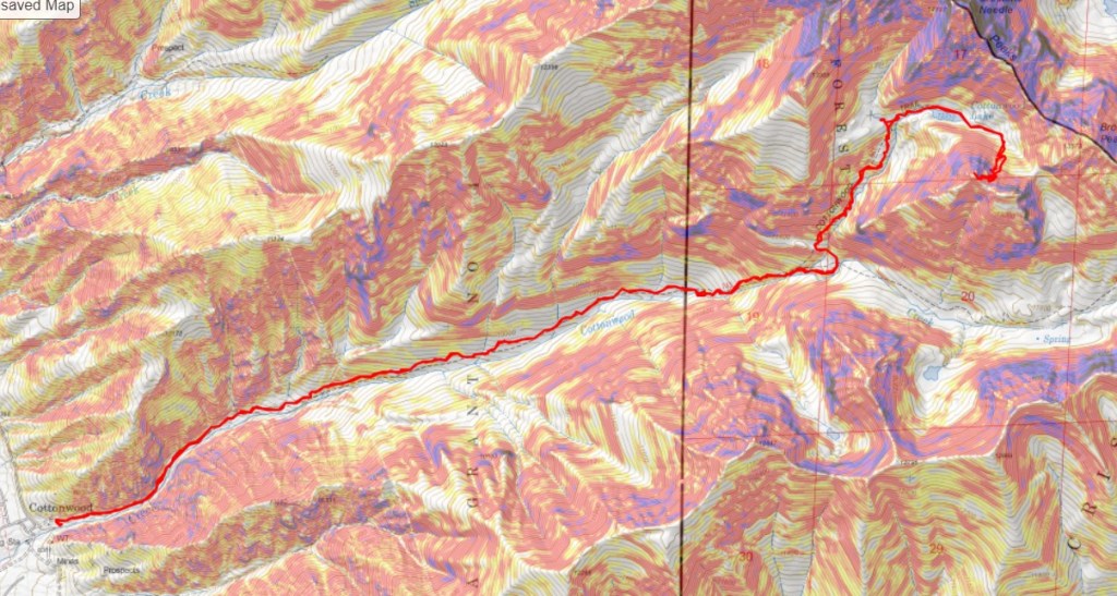 At the base of the gully, I picked up the trail again and took it towards Cottonwood Lake