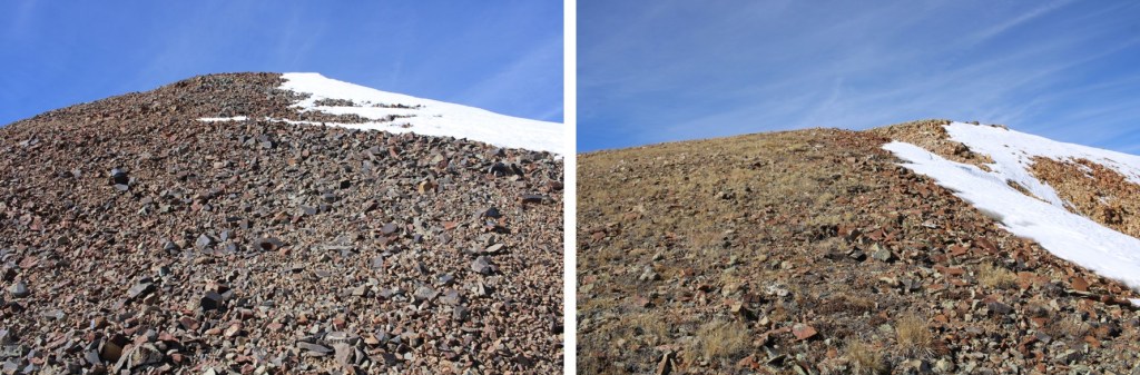 To get there, I followed the class 2 ridge as it curved southwest, and then southeast towards the summit. Here are some pictures of the ridge.