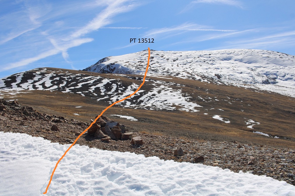 Once on the ridge, I could clearly see PT 13512, my first objective