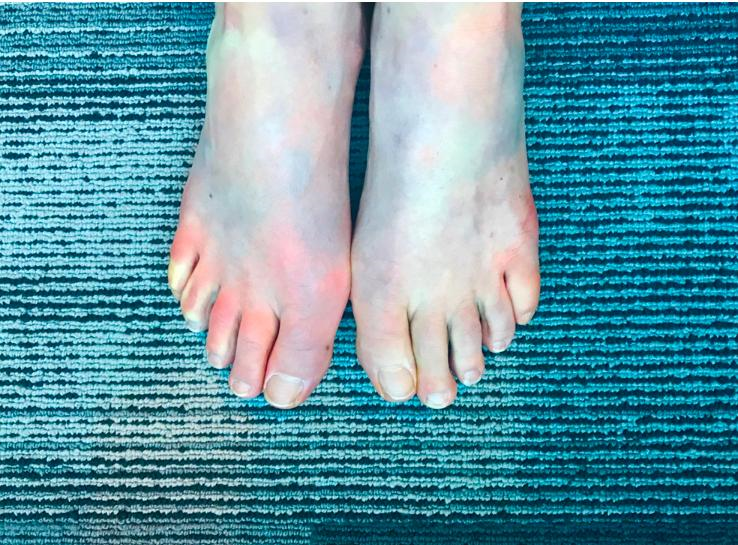 During an attack of Raynaud’s, affected areas of your skin usually first turn white. Then, they often turn blue and feel cold and numb. As you warm and your circulation improves, the affected areas may turn red, throb, tingle or swell. This can be a very painful experience. Many people mistake it for frostbite. This time I’d earned my blue toes, as I’d been snow-shoeing without the proper gear