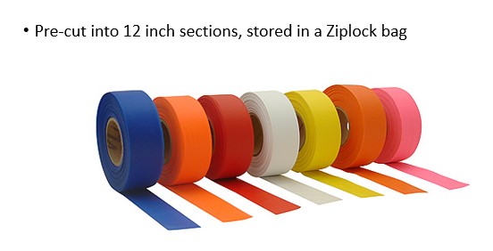 Surveyors Tape: I use surveyors’ tape as a way to self-rescue if I think I’m lost. I have a roll I bought at home depot, in a bright color so I can see it, like yellow or orange. I precut about a dozen or so strips about 12 inches long, put them in ziplock bag, and bring the roll with me as well. If I feel like I’m lost, I stop where I am, and create a ‘home base’. I get out my compass, and point it in the direction I think I should be going. Let’s just say that’s north. Then I mark a tree, rock, etc with a piece of the tape, and follow my compass north, adding strips as needed as I go. If I don’t find my way back on route, I follow the strips back to where I started, collecting them on my way. Then I try another direction, like east, and do this over and over until I find my way back on route. Surveyors’’ tape can also be used to mark and entry or exit point, or to signal danger. It’s inexpensive and lightweight and worth having in your pack