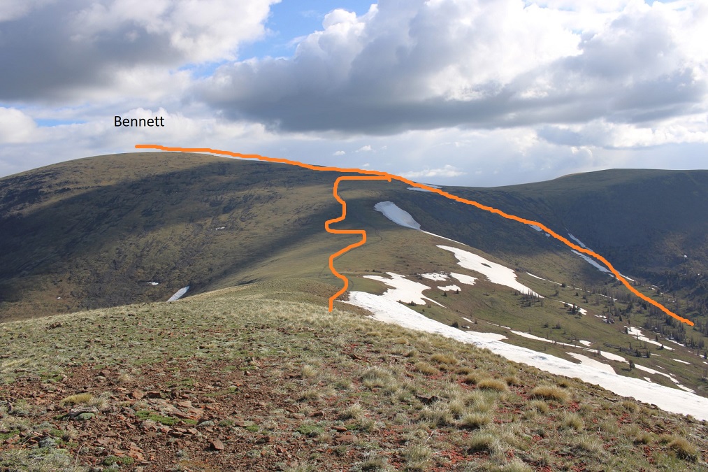 Here’s a look back in the route from Bennett Peak to Sheep Mountain