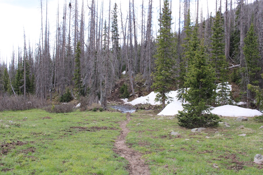 This road eventually became a trail.  I followed that trail northwest to the stream crossing