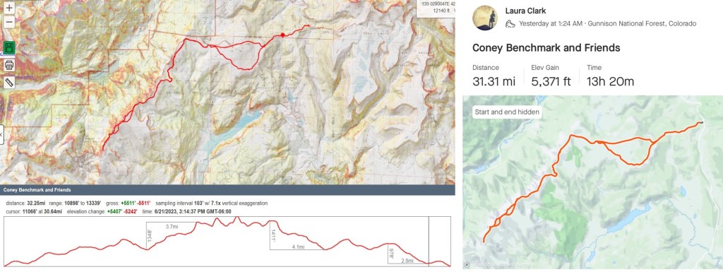 I made it back to my truck at 3:45pm, making this a 32.25 mile hike with 5511’ of elevation gain in 14 hours.