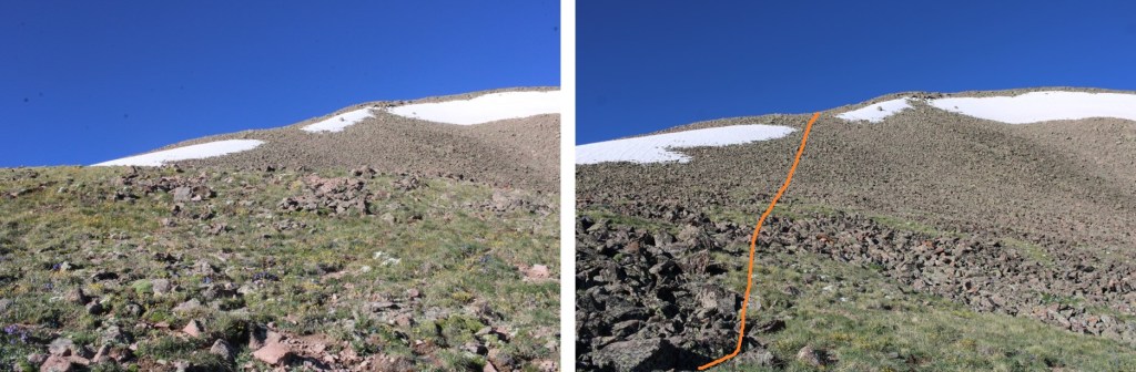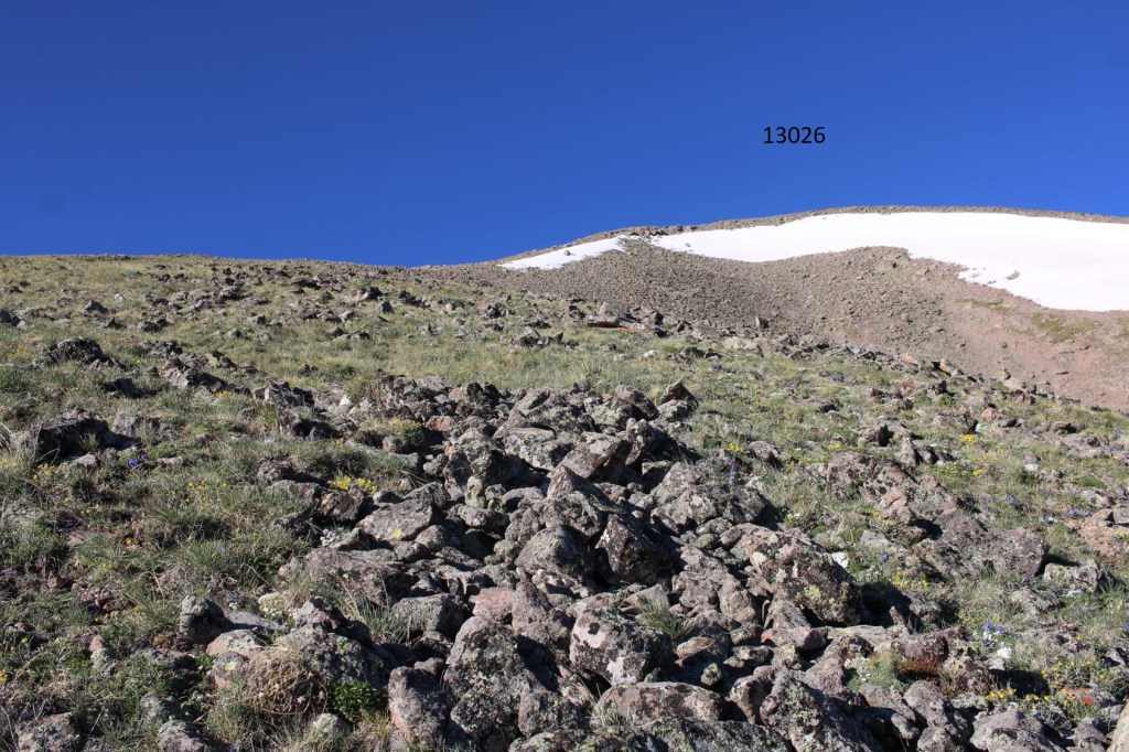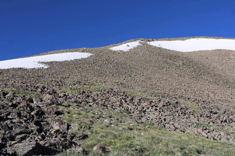 Once I made it to the ridge, I turned right, and followed it southeast to the summit. The terrain here was still all class 2, starting out as tundra and then changing to rocky.