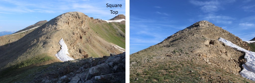 It was a straightforward ridge hike to get to Square Top Mountain, where I pretty much stayed on the ridge.  There were some easy class 3 moves, and at times I needed to dip to the left or right.  The rock is very loose in areas, and very stable in others, so basically it keeps you on your toes.  I lost about 180’ of elevation going to the Fossil/Square Top saddle.  Here are some pictures of the ridge to Square Top Mountain.