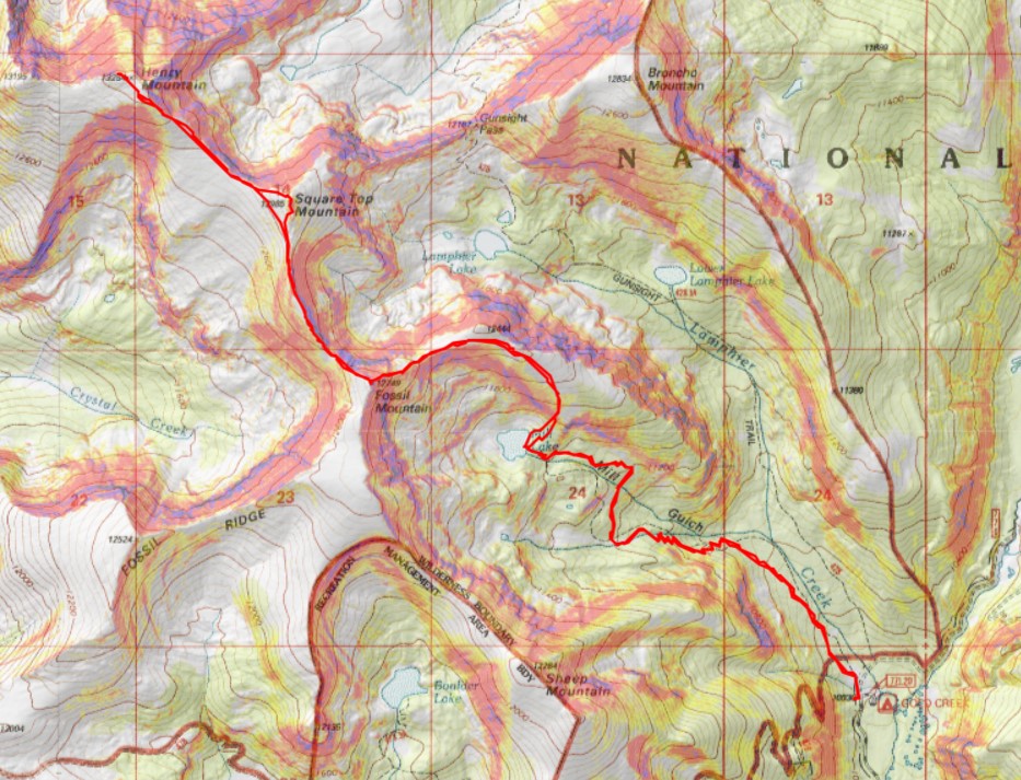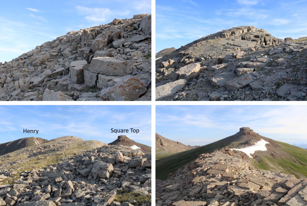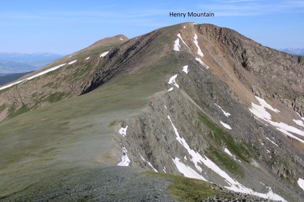 I descended Square Top Mountain to the northwest, and hiked on tundra to the summit of Henry.  There were some very faint fame trails here I utilized.