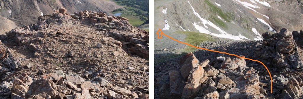 I went straight up and over this large rock formation.  It was easy class 3.  You can go to the right to get around it, but you’ll be met with loose talus and a gully.