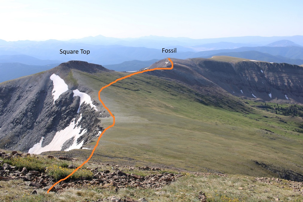 From the summit of Fossil Mountain, looking to the northeast you can see the other two peaks I was headed for today, Square Top Mountain (unranked), and Henry Mountain