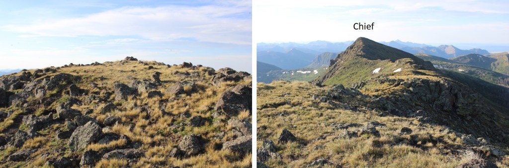 I made it to the top of this point, and even though there was a cairn at the top and a summit marker, I discovered it was a false summit. This is the actual summit of Chief Mountain.