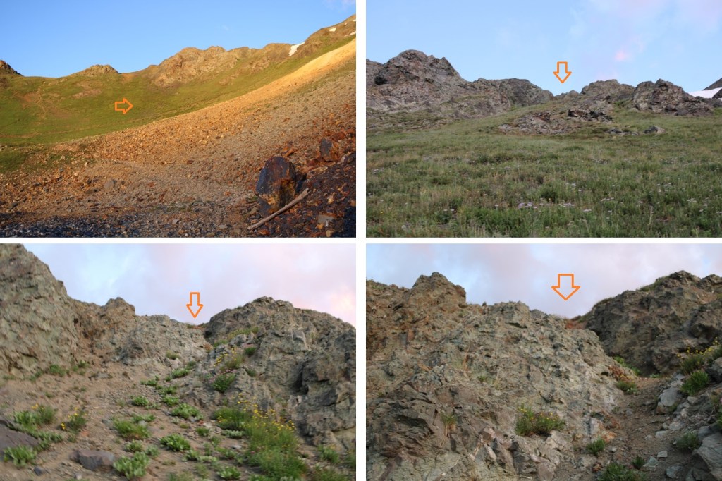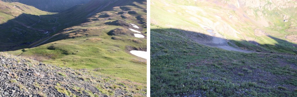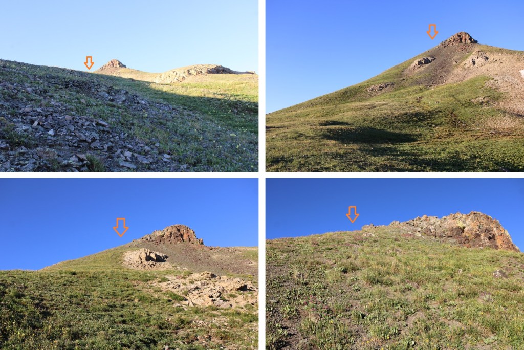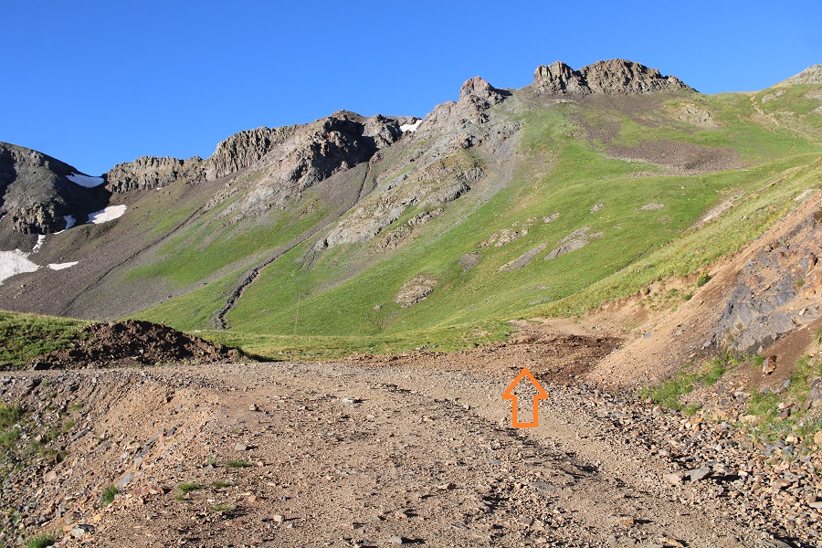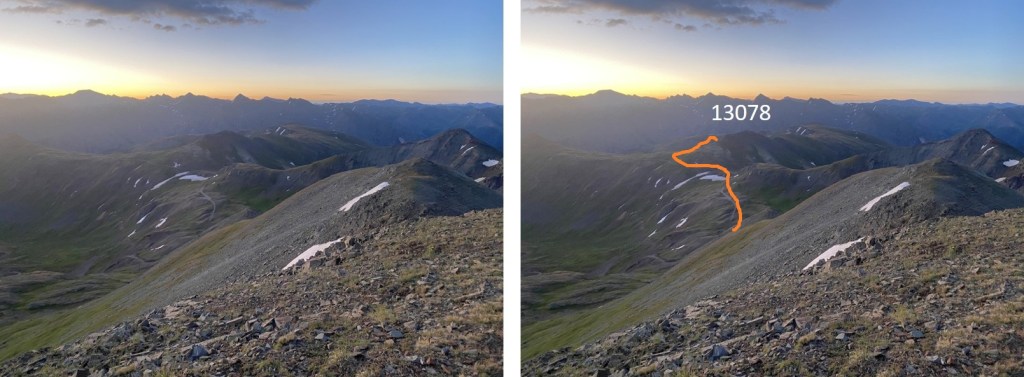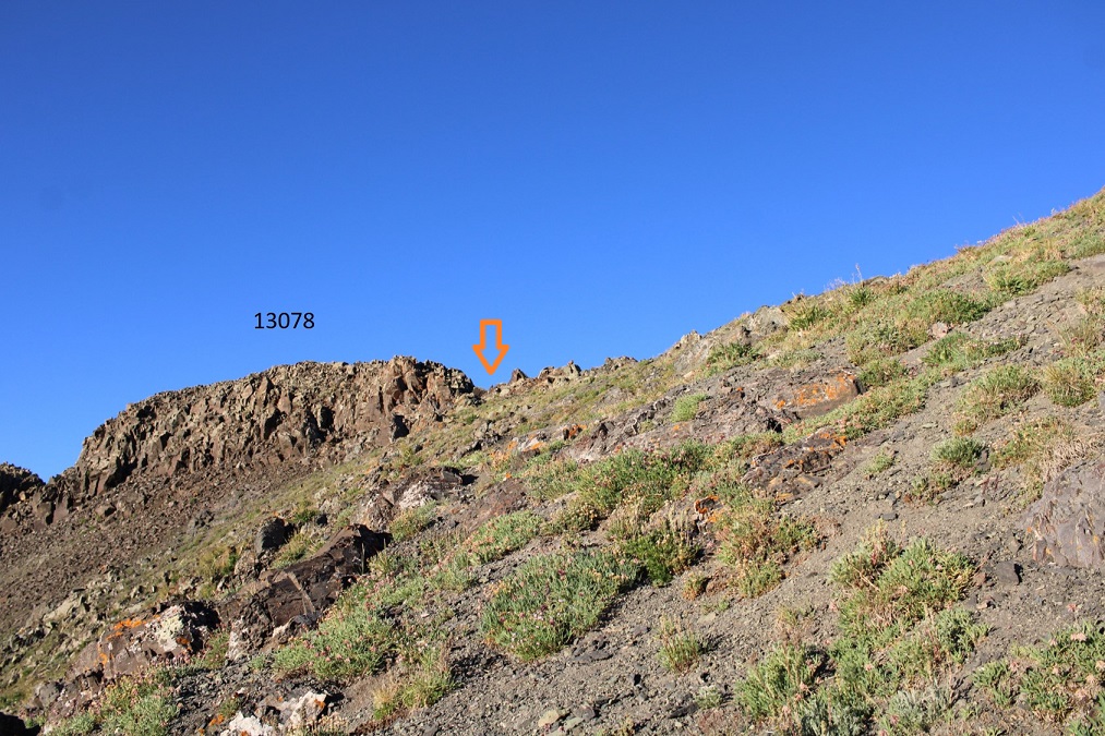 Back on the road, I turned right and followed it east until I was at 12750’  Here’s a visual of where I started my ascent up 13078