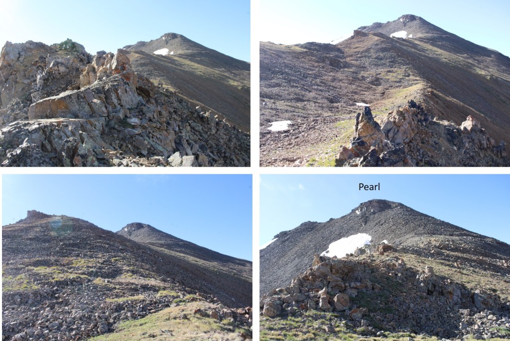 Here is my overall route up to Pearl Mountain. I was able to keep this mostly class 2, with just a few easy class 3 moves, mostly sticking to the ridge. There were a few spots with exposure, made interesting by the 40mph winds.