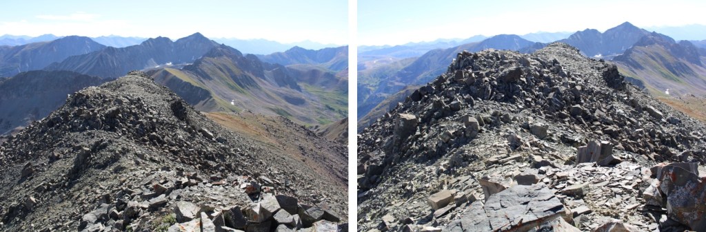 It was very windy on the summit, and a cold wind for August. I turned around and looked southeast, at Pearl Mountain