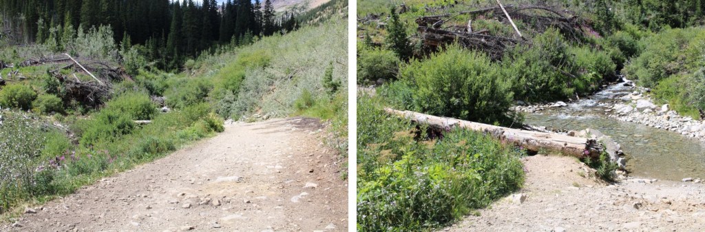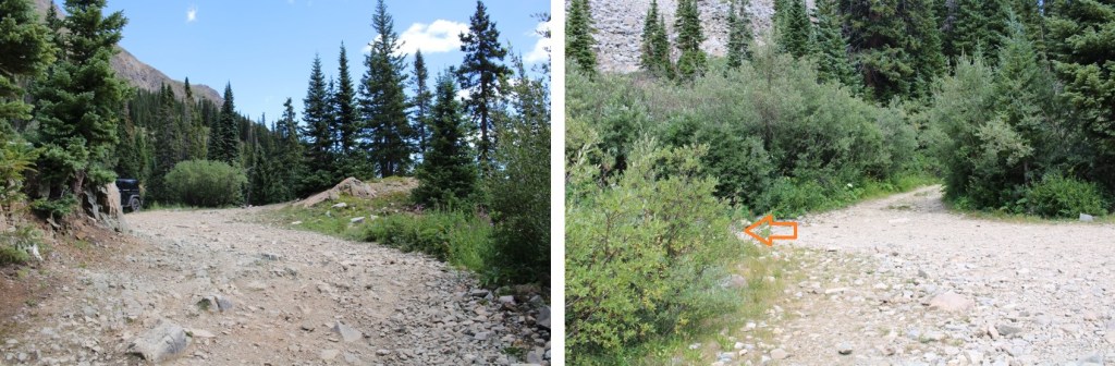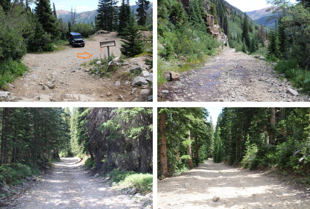 After hiking for 2.5 miles I came to the Pearl Pass/Montezuma Mine junction and went left towards Pearl Pass Road. There are places to park here as well, and if you have a stock 4WD you should be able to make it to this point. After this junction it’s modified, lifted (etc.) 4WD only.