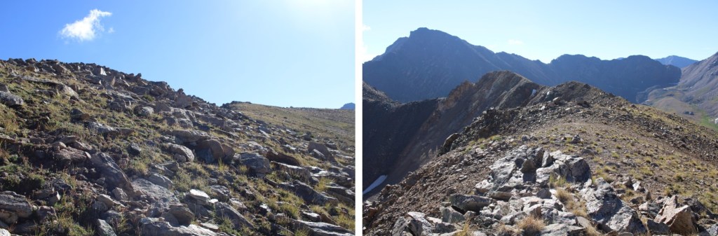Here are some pictures of the terrain to the summit. I dropped my pack to make for easier climbing. It also made it easier to find my way back, as I just aimed for my pack below.