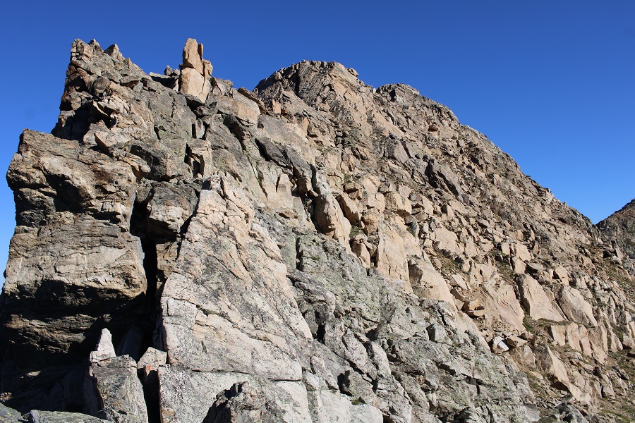 Now for the fun part! It was time to scale the east side to the summit. This is choose your own adventure. I stayed on the east side the entire time. The ridge proper looks like it goes at class 4. I stayed more to the east while climbing.