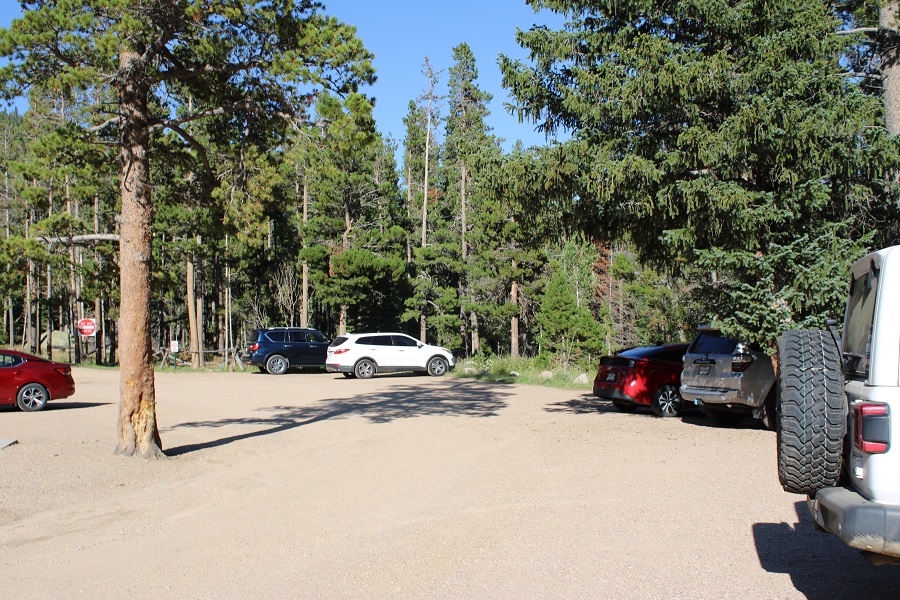 The trailhead starts at the south end of the parking area