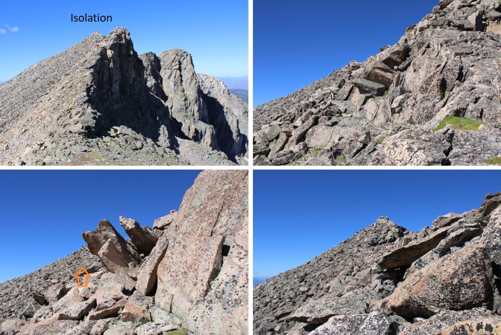 Once on the ridge, I turned left and could see Isolation Peak to the southwest. This was a class 2 hike, sticking to game trails either directly on or to the left of the ridge, until the last 10 feet or so, when it was a quick class 3 scramble to the summit