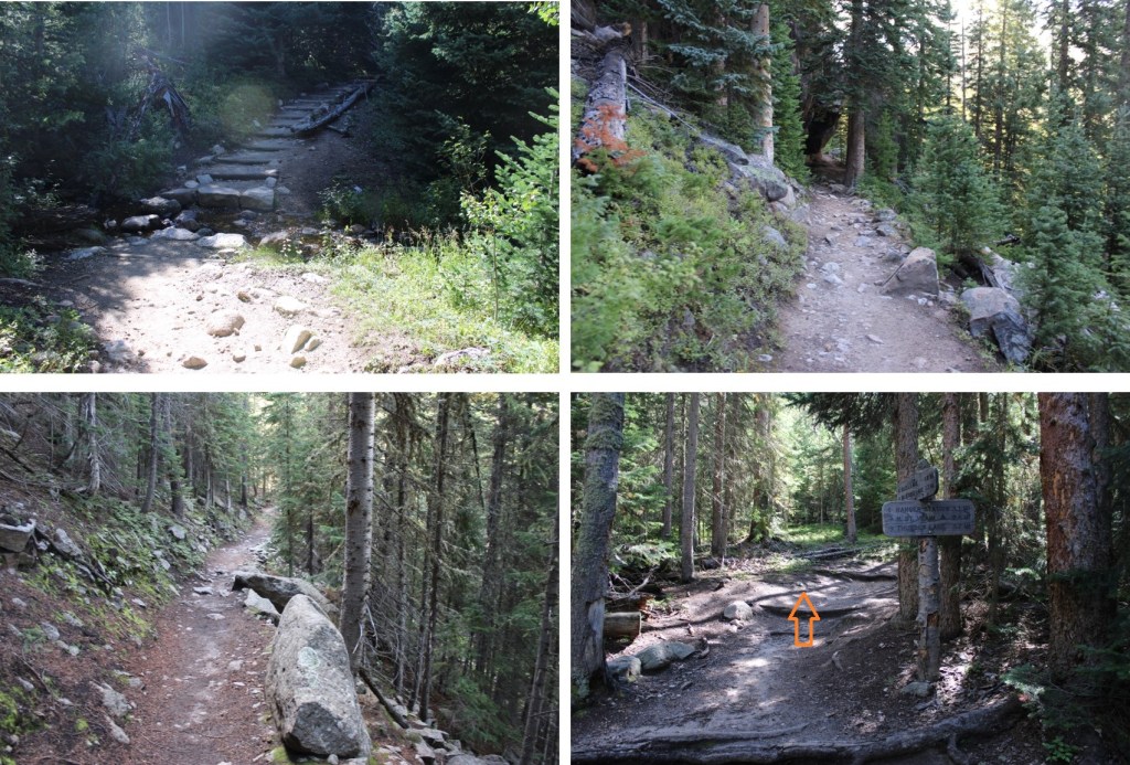 I followed the signs for Ouzel Lake/Bluebird Lake.  This class 1 trail is really well marked, so it’s difficult to get lost if you read the signs.  I passed several waterfalls (Copeland Falls, Calypso Falls, and Ouzel Falls).