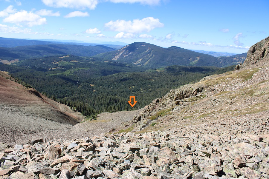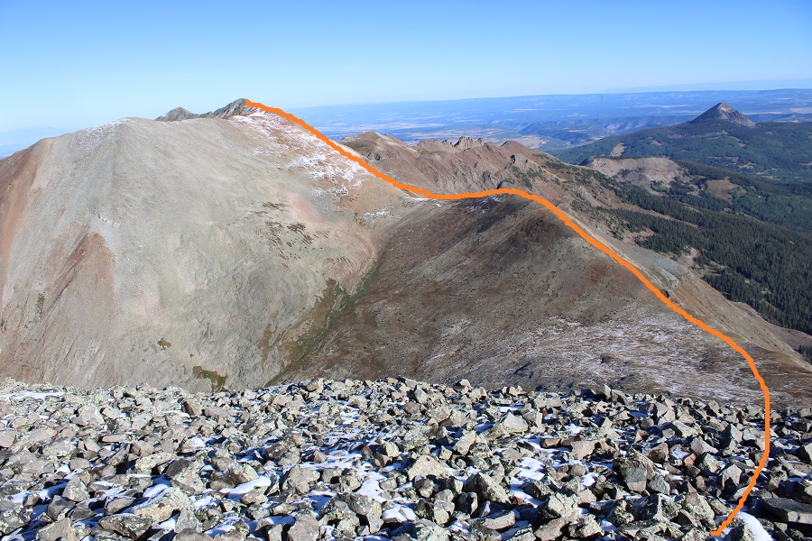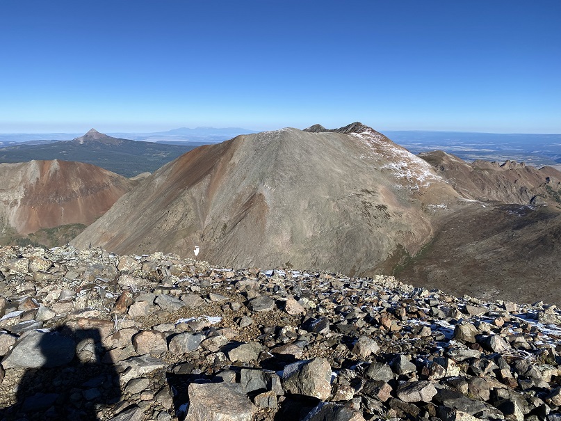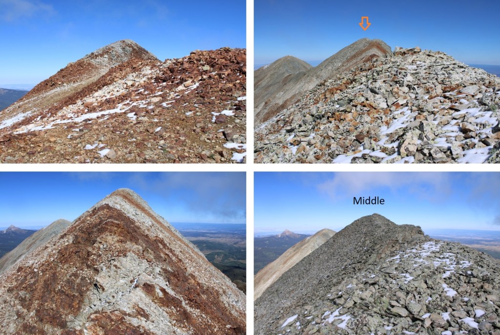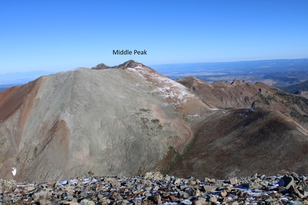 P.S. You’ll notice on the topo map “Middle Peak” is labeled as being further west than where I summited. Here’s a picture of what the map is referring to, taken from the summit of the ranked Middle Peak. This point sits at 13261’, and is named, but not considered a ranked or soft ranked peak.