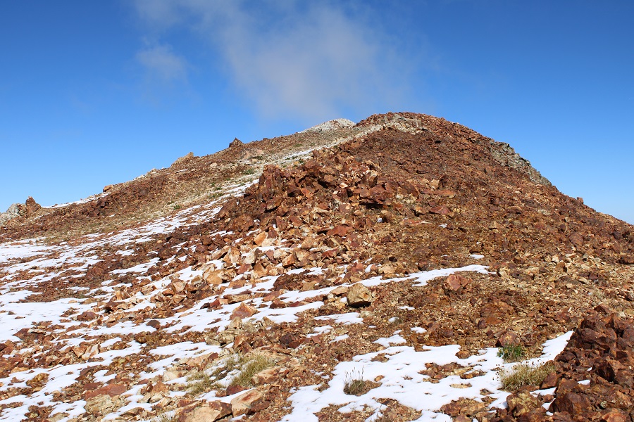 This was a false summit, as the true summit was further to the northwest, following the ridge proper. This was all class 2, but with some exposure. The rock was very crumbly.
