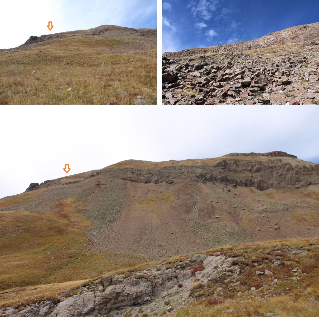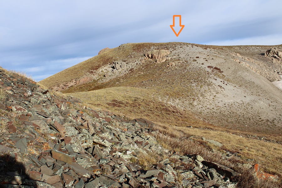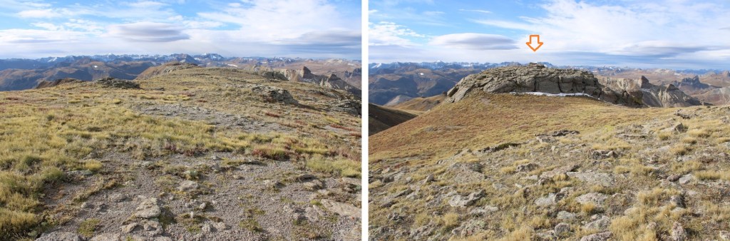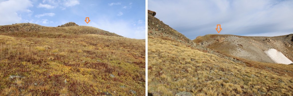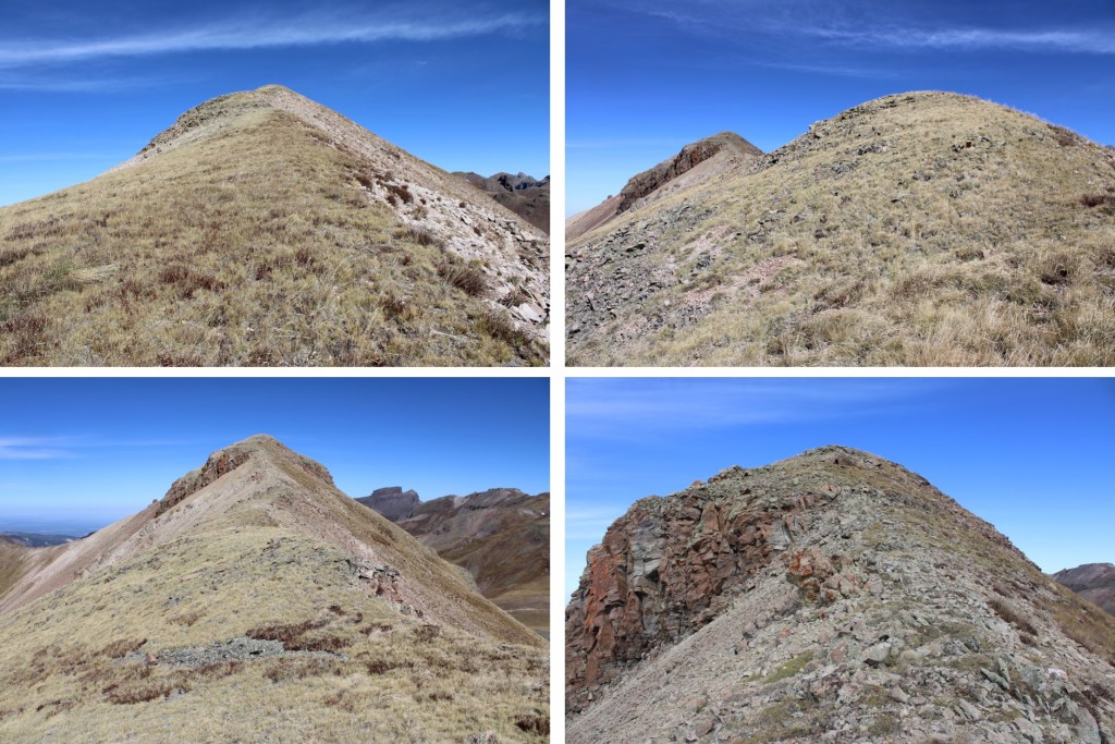 Once on the ridge I followed it north.  The actual summit is hidden here.  This is a class 2 ridge hike, mostly on tundra, with a few false summits along the way.