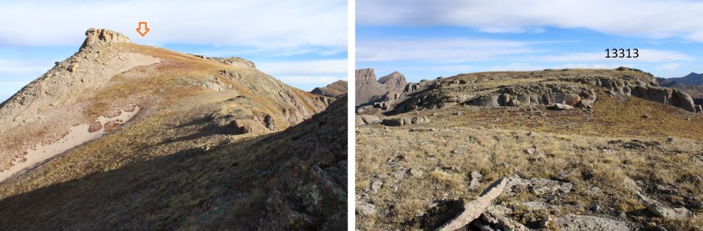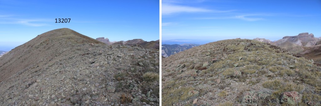 This time, instead of taking the Wetterhorn Trail back down to the trailhead, I followed the Saddle Trail south.  This was a much better trail, and took me to the saddle of PT 13207 and 12979.