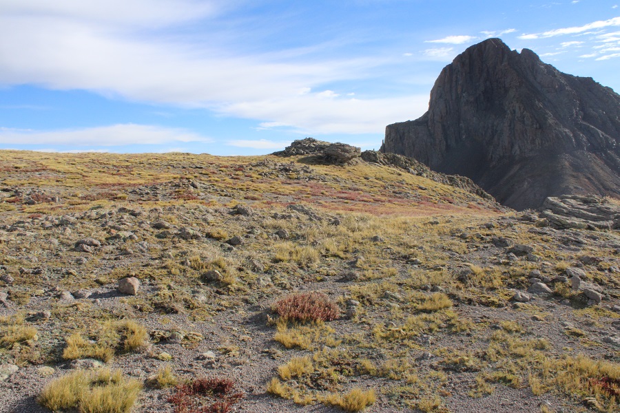 Once at the saddle, I turned right and headed northwest on tundra, towards this rock formation