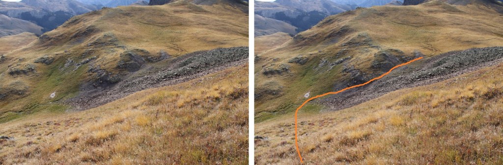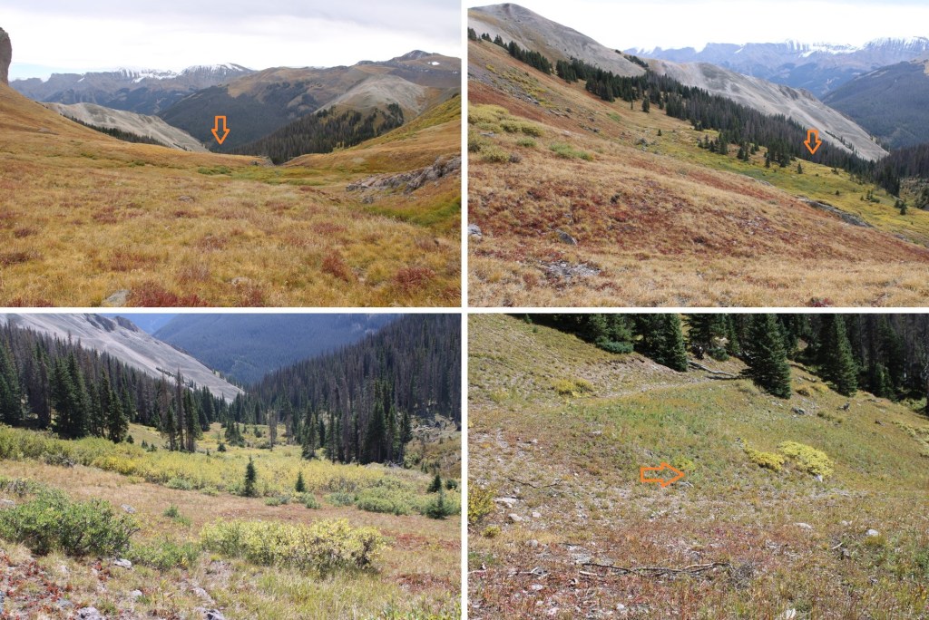 And then turned right and headed southeast down the basin until I could find the Wetterhorn Basin Trail