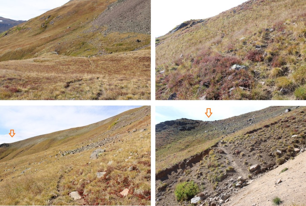 Just before the rocky section, I turned left, and descended back to the Saddle Trail down talus and tundra.  This was class2, and I could clearly see the trail below.