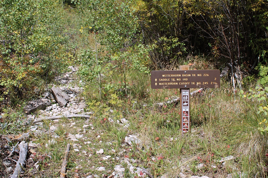 Back on the trail, I followed it to the Wetterhorn Basin Trail/Saddle Trail Junction