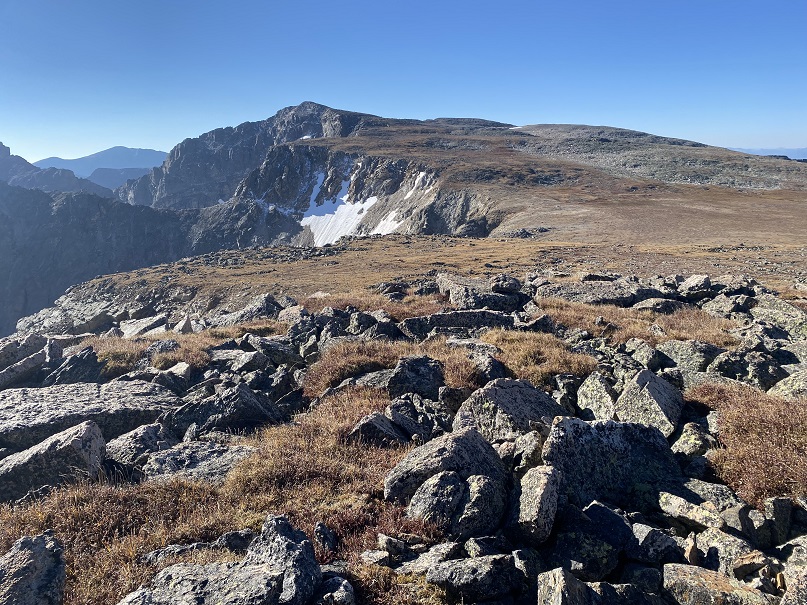 At the top of the rock slope I turned left, and walked the short distance to the summit of unranked Ouzel Peak
