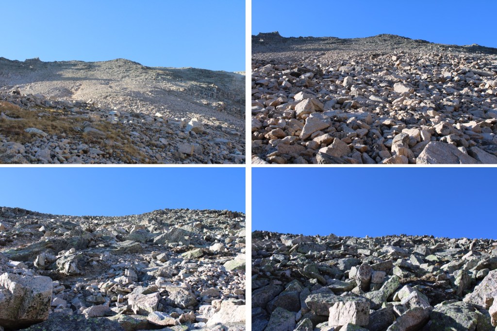 Once at the top of the grassy gully I turned left, and ascended the slope.  Yes, it’s steep.  This is class 2+, but luckily there isn’t a lot of scree.  Instead, these rocks are fairly stable (still check your footing for loose rocks).  This is also choose your own adventure.  The entire slope goes.  It’s about 1200’ of elevation gain from Pipit Lake to the ridge.